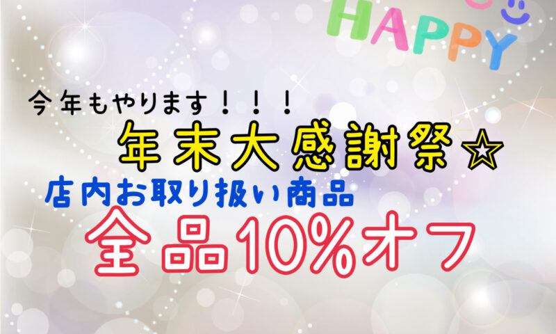 店内取り扱い商品すべて10%オフ大感謝祭!!!!今年もやります!!!!