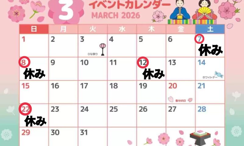 また、個別にて別日にもお休みを頂いております